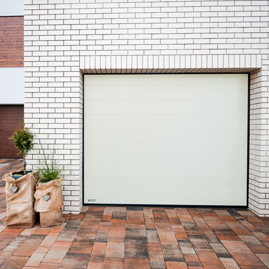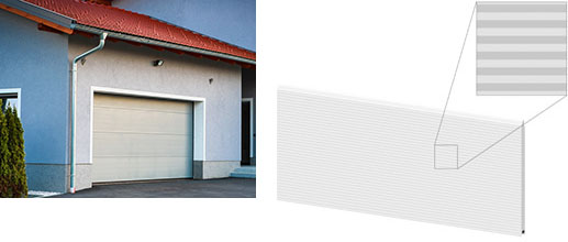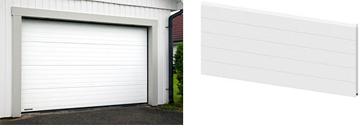 Klassiska och universella Garageportportar med en smal horisontell struktur, finns både som Woodgrain och slät plåt och tillgänglig i alla RAL- palett färger.