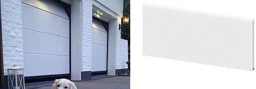 Våra mest sålda Garageportar med en bred horisontell struktur, finns både som Woodgrain och slät plåt och tillgänglig i alla RAL- palett färger.